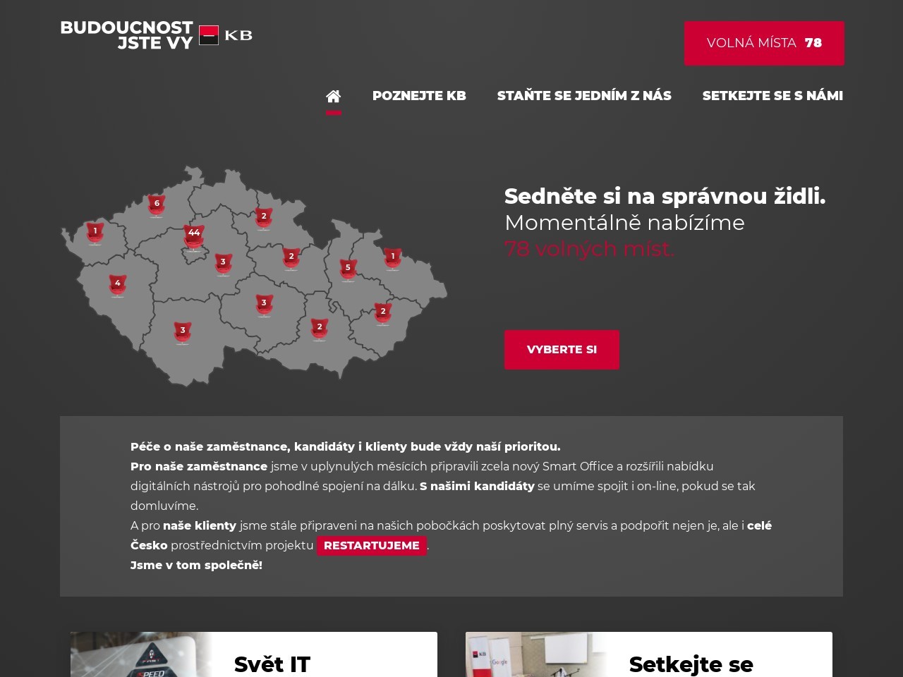 Právě si prohlížíte galerii Kariérních stránek PROFI, která vám umožní efektivně budovat značku zaměstnavatele na pracovním trhu a díky tomu zaujmout více vhodných kandidátů. Při tvorbě kariérních stránek Vám nabízíme unikátní know-how, zkušenosti lídra v oblasti HR Marketingu a rozsáhlou sadu nástrojů a služeb pro komunikaci s kandidáty.